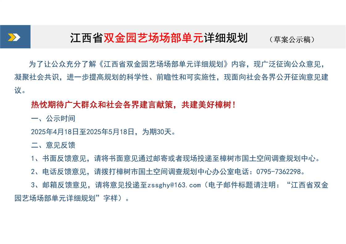 《江西省雙金園藝場場部單元詳細規劃》草案公示