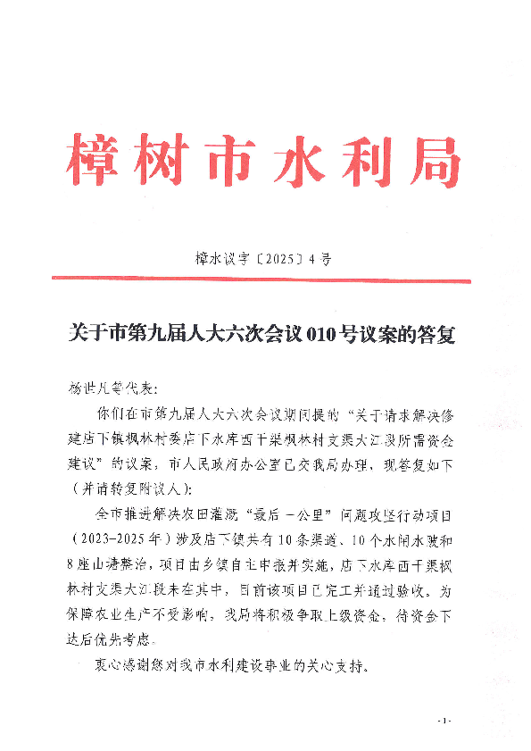 您當前所在位置: 首頁>政務公開>政府部門信息公開>部門信息公開目錄>市水利局>法定主動公開內容>建議提案辦理>辦理結果