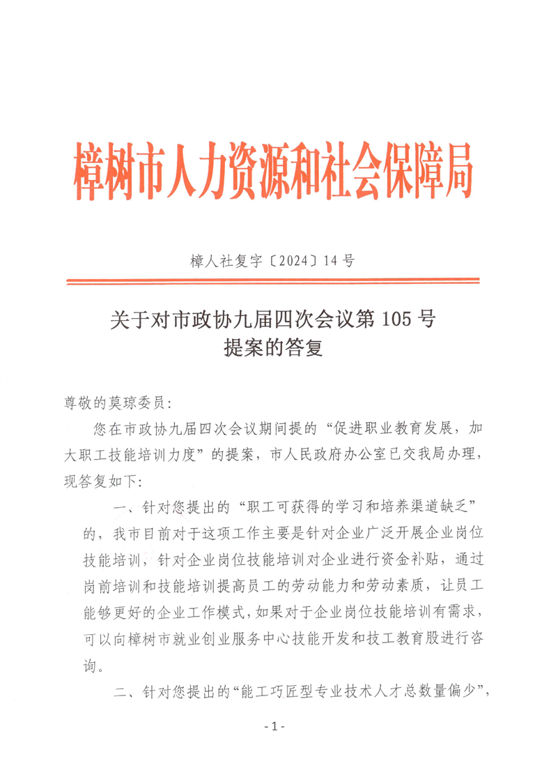 關(guān)于對(duì)市政協(xié)九屆四次會(huì)議第105號(hào)提案的答復(fù)