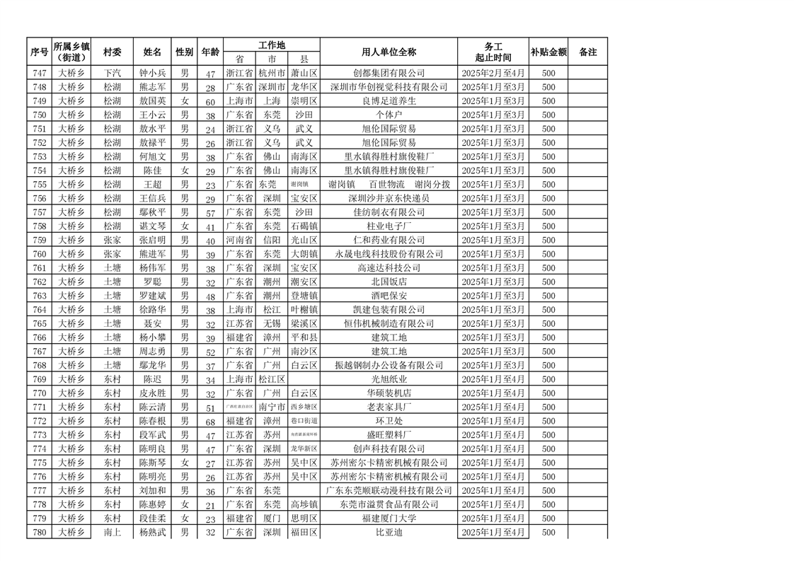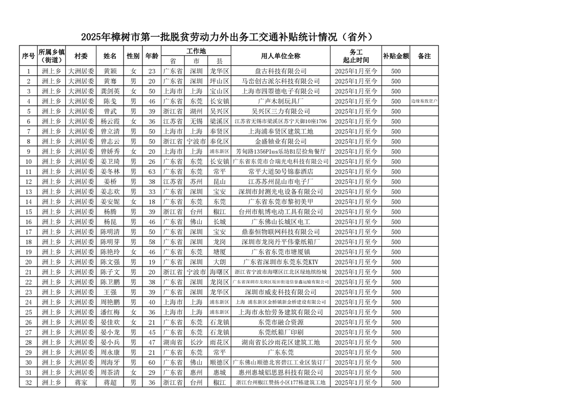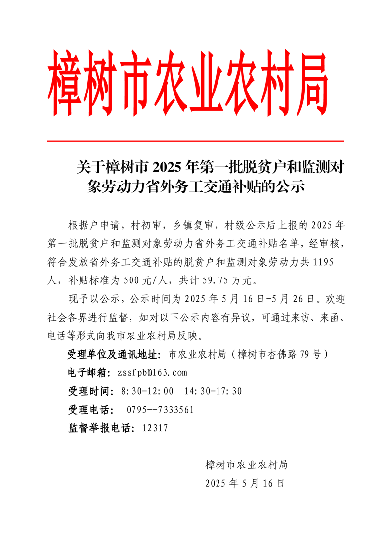 關(guān)于樟樹市2025年第一批脫貧戶和監(jiān)測(cè)對(duì)象勞動(dòng)力省外務(wù)工交通補(bǔ)貼的公示