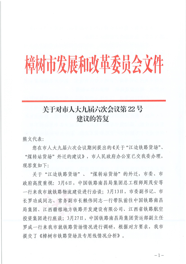 關(guān)于對市人大九屆六次會(huì)議第22號建議的答復(fù)