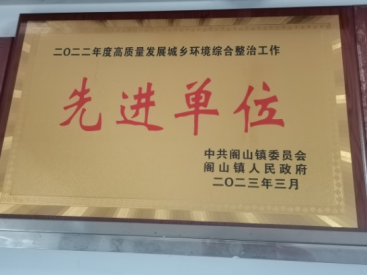 獲得閣山鎮(zhèn)黨委和政府頒發(fā)的“2022年度城鄉(xiāng)環(huán)境綜合整治工作先進單位”: