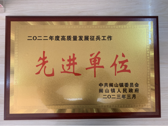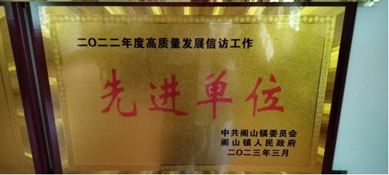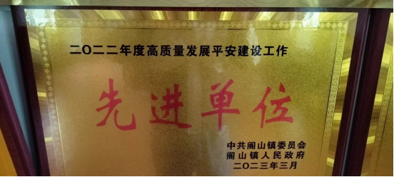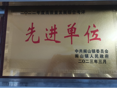 獲得閣山鎮(zhèn)黨委和政府頒發(fā)的“2022年度高質量發(fā)展綜合考評先進單位”:
