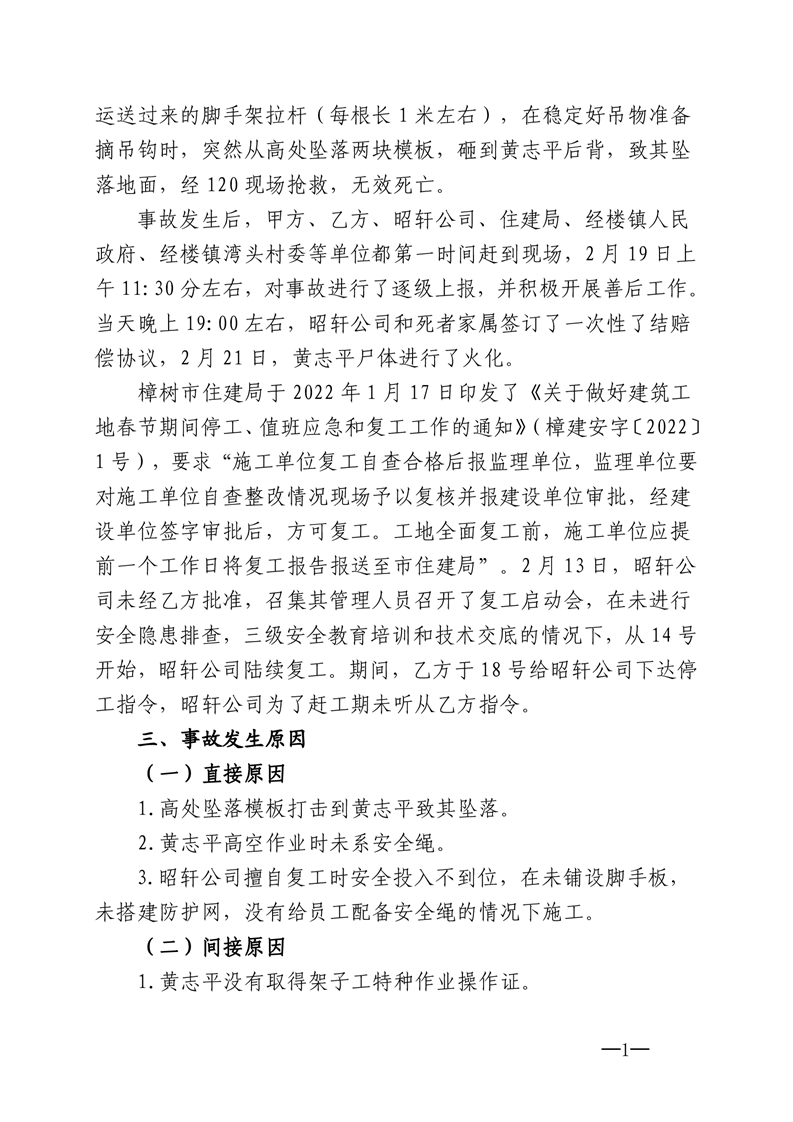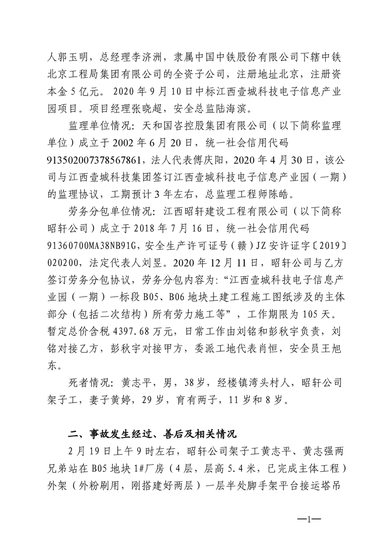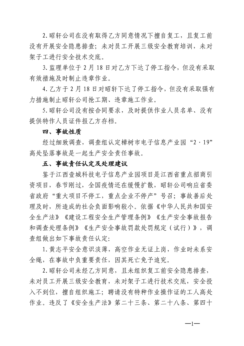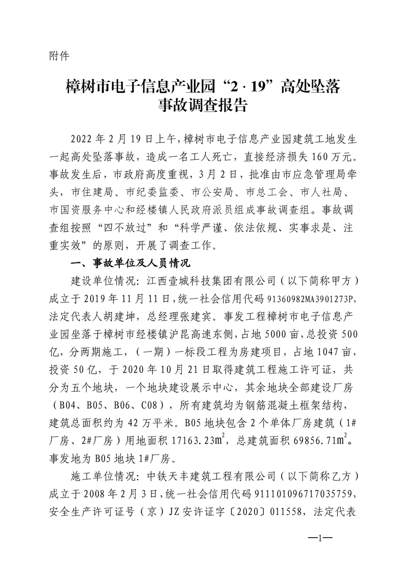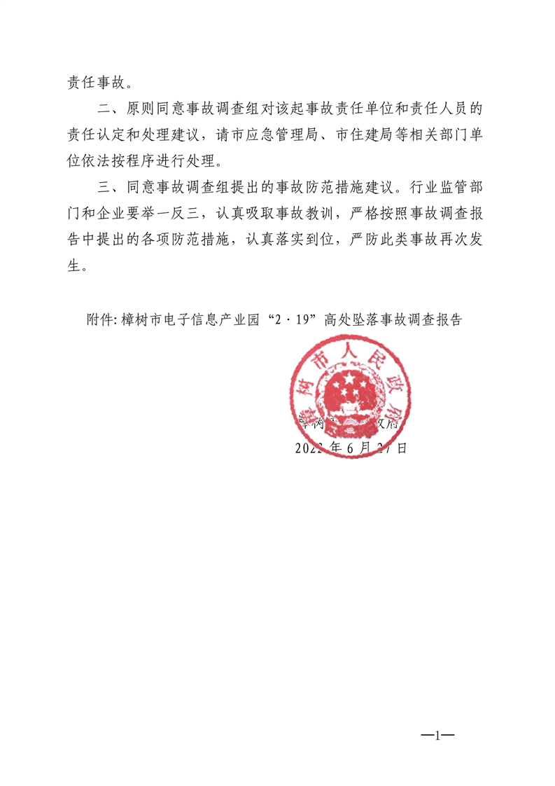 樟樹市人民政府 關于樟樹市電子信息產業園 “2·19”高處墜落事故調查報告的批復