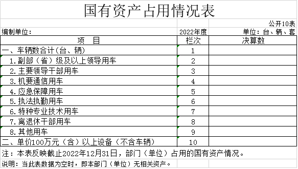 截止2022年12月31日,本部門國有資產占用情況見公開10表《國有資產占用情況表》。