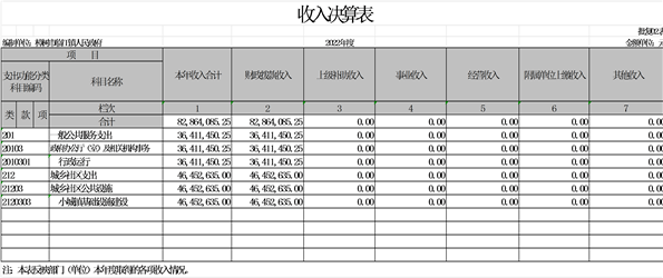 本年收入的具體構成為:財政撥款收入8286.41萬元,占100%;事業收入 0 萬元,占 0 %;經營收入 0 萬元,占 0 %;其他收入 0 萬元,占 0 %。