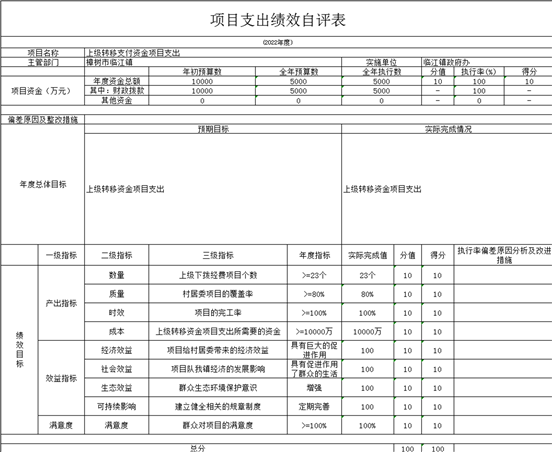 根據預算績效管理要求,我部門組織對納入2022年度部門預算范圍的二級項目11個全面開展績效自評,共涉及資金53744萬元,占項目支出總額的100%。