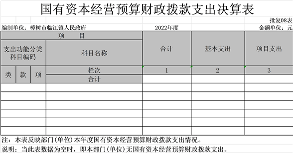八、國有資本經營預算財政撥款支出決算表