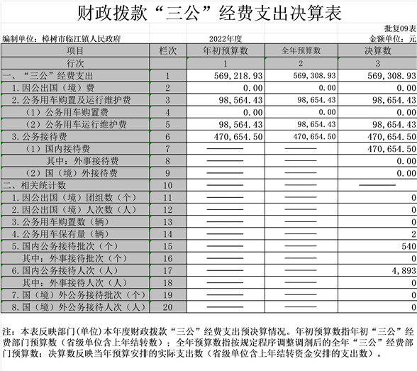 “三公”經費支出:指用財政撥款安排的因公出國(境)費、公務用車購置及運行維護費和公務接待費。其中,因公出國(境)費反映單位公務出國(境)的國際旅費、國外城市間交通費、住宿費、伙食費、培訓費、公雜費等支出;公務用車購置及運行維護費反映單位公務用車車輛購置支出(含車輛購置稅、牌照費),按規定保留的公務用車燃料費、維修費、過橋過路費、保險費、安全獎勵費用等支出;公務接待費反映單位按規定開支的各類公務接待(含外賓接待)支出。