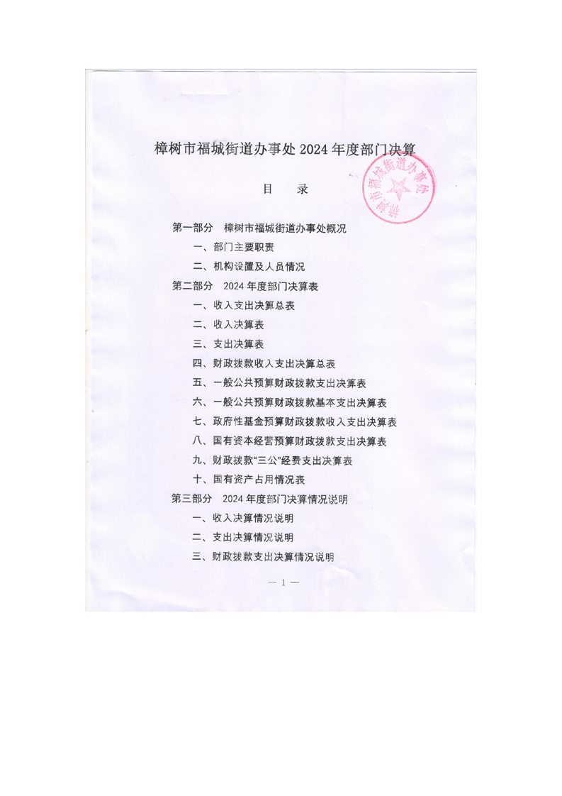 樟樹市福城街道辦事處2024年度部門決算