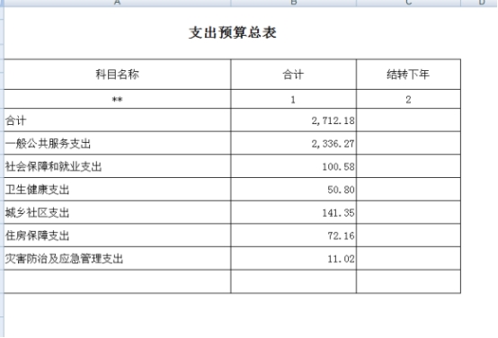 按支出功能科目劃分:一般公共服務支出2336.27萬元,社會保障和就業支出100.58萬元,衛生健康支出50.8萬元,城鄉社區支出141.34萬元,住房保障支出72.16萬元,災害防治及應急管理支出11.02萬元。