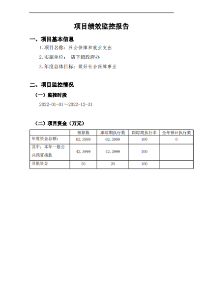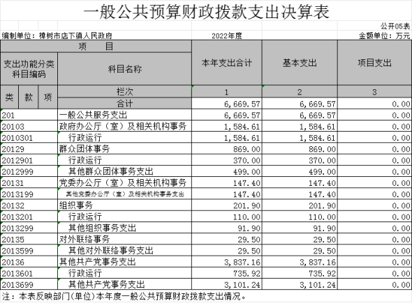 店下鎮人民政府2022年度部門決算