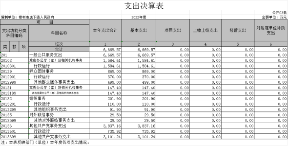 本部門2022年度財政撥款本年支出年初預算數為6669.57萬元,決算數為6669.57萬元,完成年初預算的100%。其中: