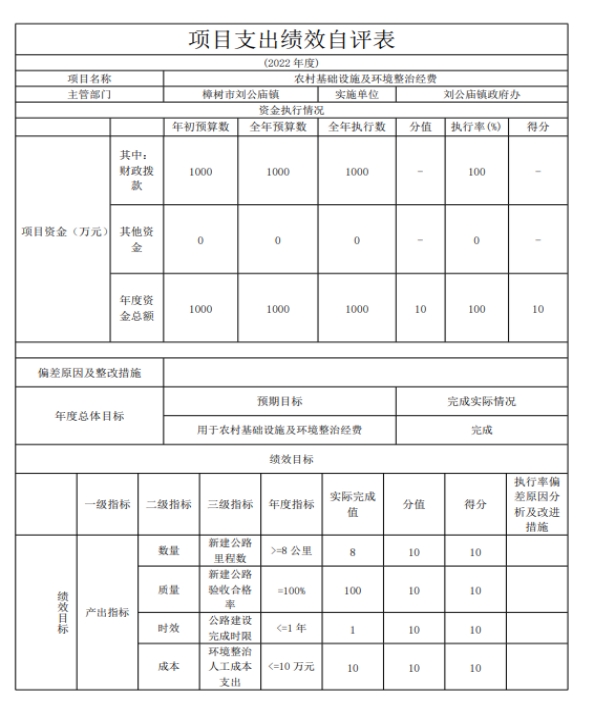 立足于我鄉維持運轉和發展的需求,在本年度項目績效目標申報情況的基礎上,對其預算執行情況、各項目進展情況等全面進行綜合評價。