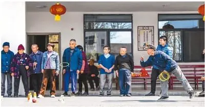 江西省樟樹市店下鎮養老服務中心的老人在戶外玩游戲。 周 亮攝(人民視覺)
