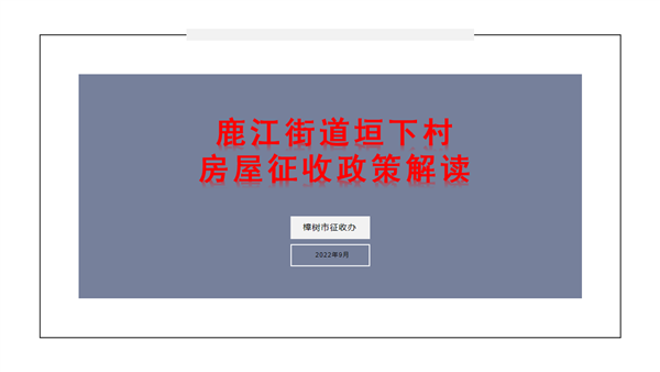 【PPT解讀】鹿江街道大路口村委垣下村房屋征收政策解讀