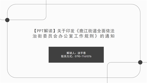 【PPT解讀】關于印發《鹿江街道全面依法治街委員會辦公室工作規則》的通知