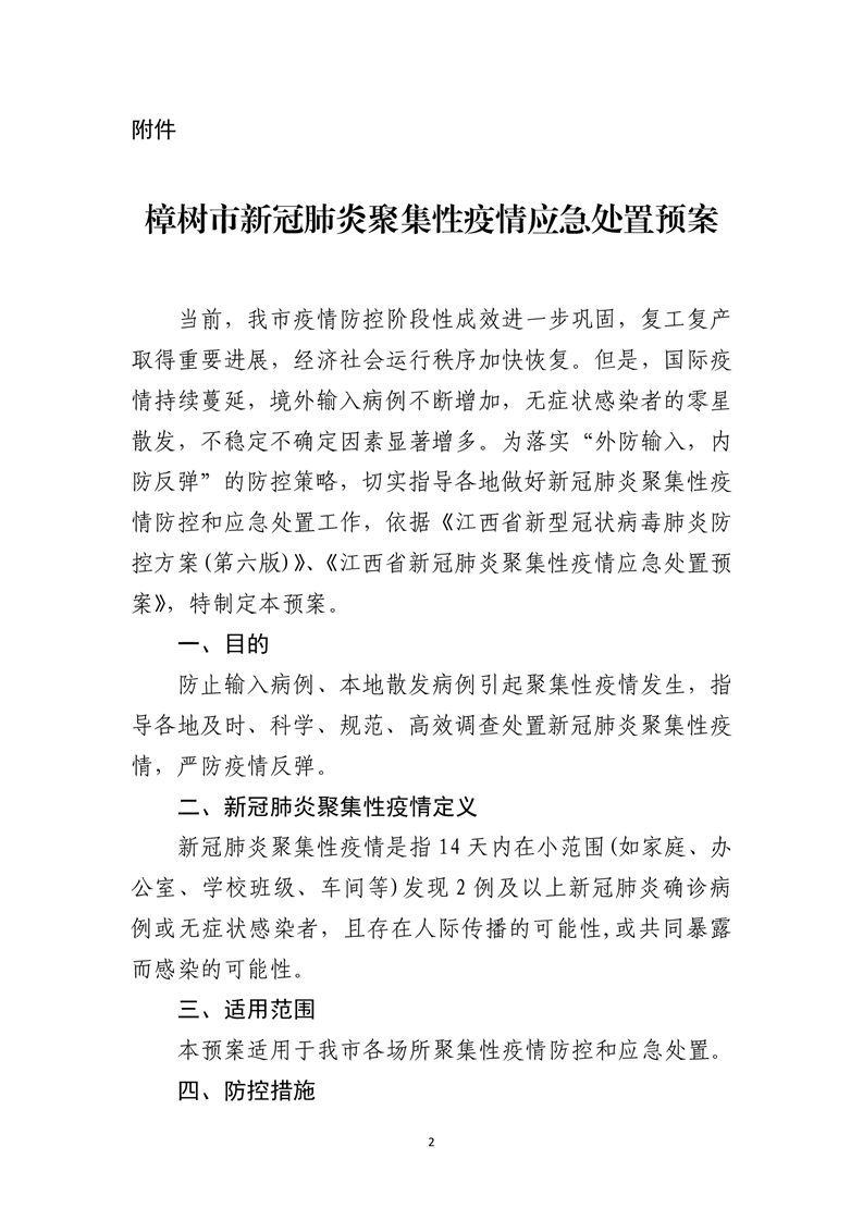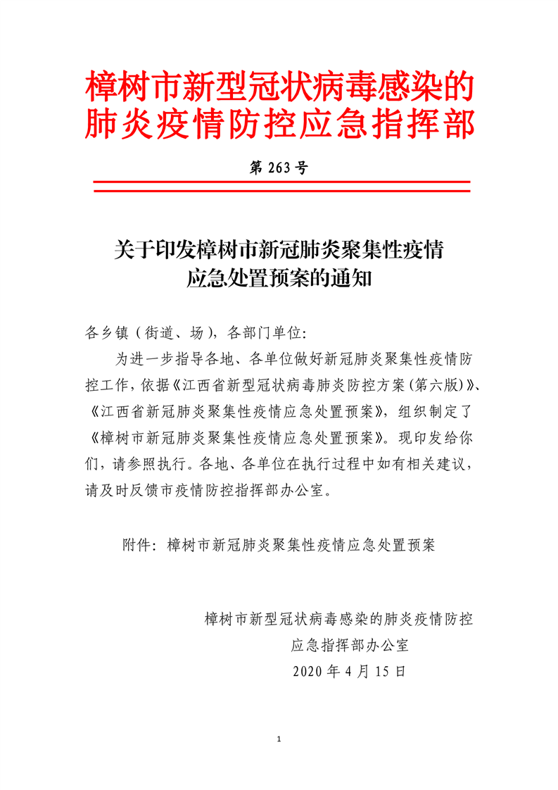 關(guān)于印發(fā)樟樹市新冠肺炎聚集性疫情應(yīng)急處置預(yù)案的通知