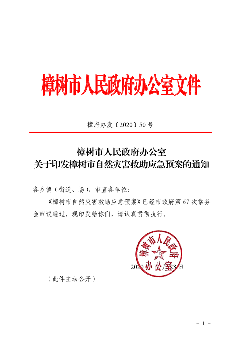 樟樹市人民政府辦公室關于印發樟樹市自然災害救助應急預案