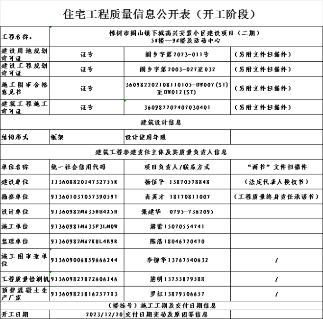 根據宜春市住房和城鄉建設局下發的《宜春市住宅工程質量信息公開實施方案》,現將樟樹市悅江府安置小區(一期)建設項目住宅工程質量信息公示如下。