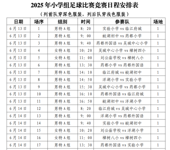 由樟樹市教育體育局主辦,樟樹市足球協會承辦,樟樹市慶仁中藥飲片公司贊助的2025樟樹市“慶仁中藥杯”小學生足球賽今天開始了第一天的比賽。本次比賽共有男女共40支隊伍參加,其中男子特色學校13支組和男子普通學校11支,女子隊特色9支,女子普通學校7支。他們將在為期三天的比賽中決出最終的冠軍。具體比賽時間和對陣