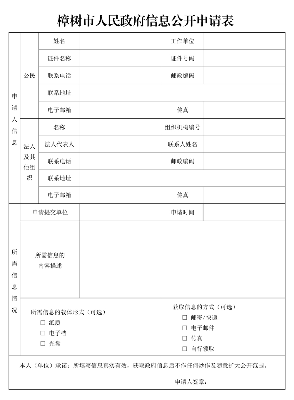 樟樹市財政局信息公開申請表