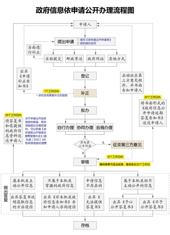 本機關收到政府信息公開申請后,按規定程序對申請進行審查,能夠當場答復的,當場予以答復;不能當場答復的,自收到申請之日起在20個工作日內予以答復;如遇特殊情況需延長答復期限的,經本機關信息公開工作機構負責人同意,并告知申請人,可延長20個工作日。