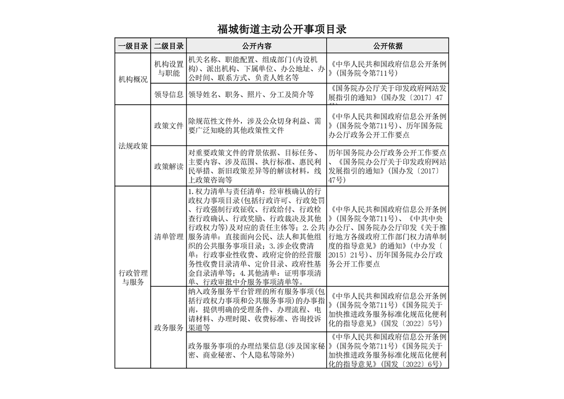 福城街道主動公開事項目錄