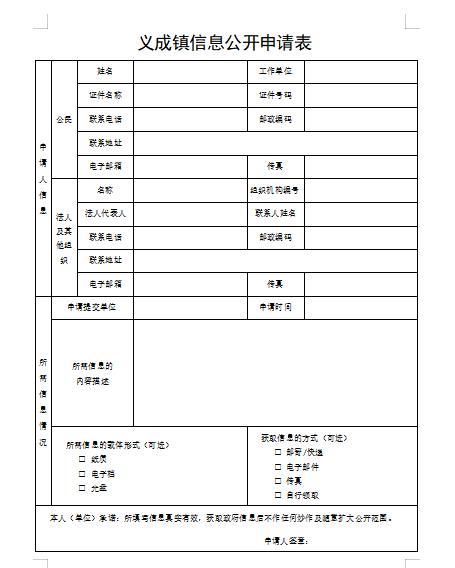 (3)當面申請。申請人可以到義成鎮(zhèn)信息公開機構(gòu)當面申請。