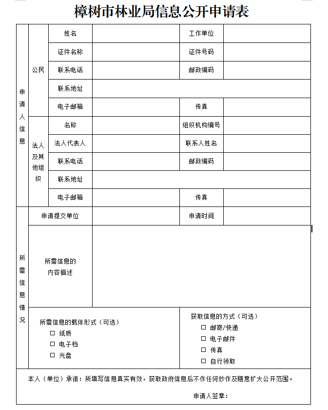 (3)當面申請。申請人可以到樟樹市林業局信息公開機構當面申請。
