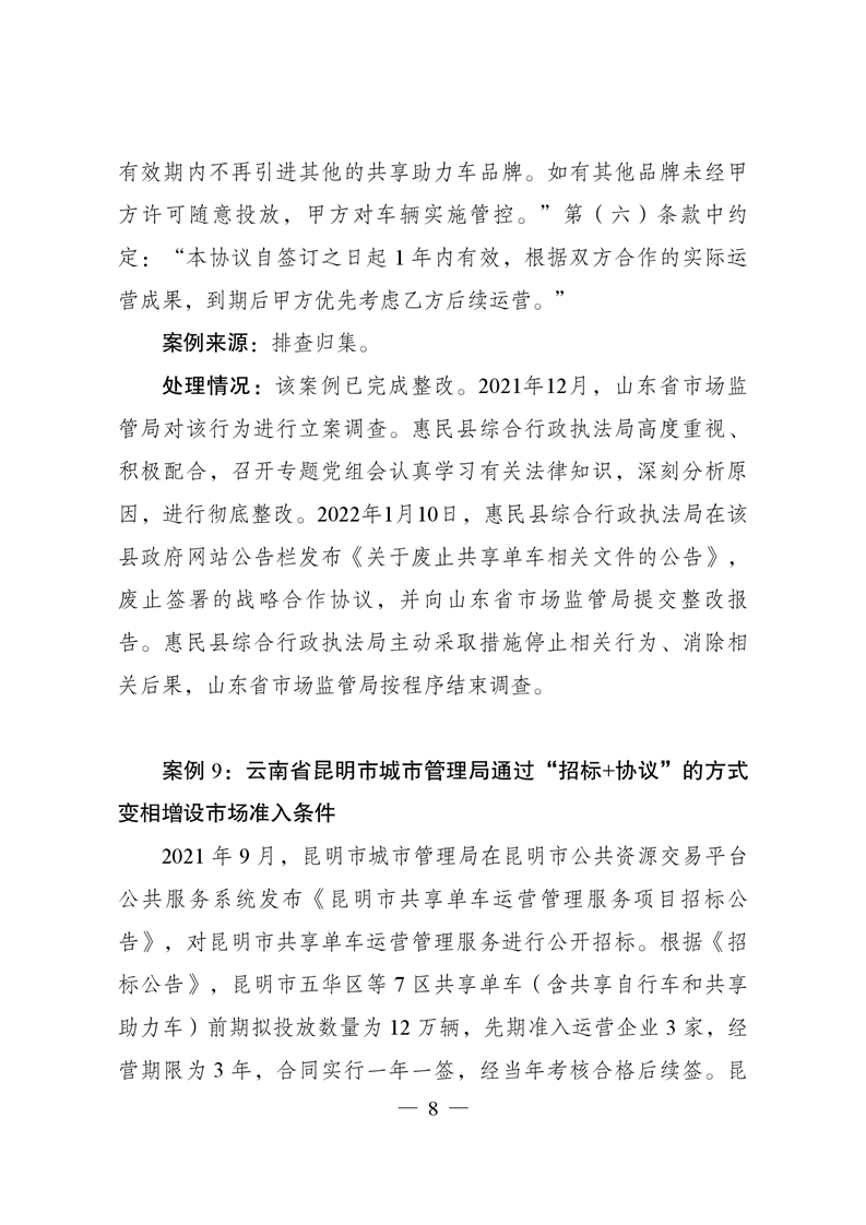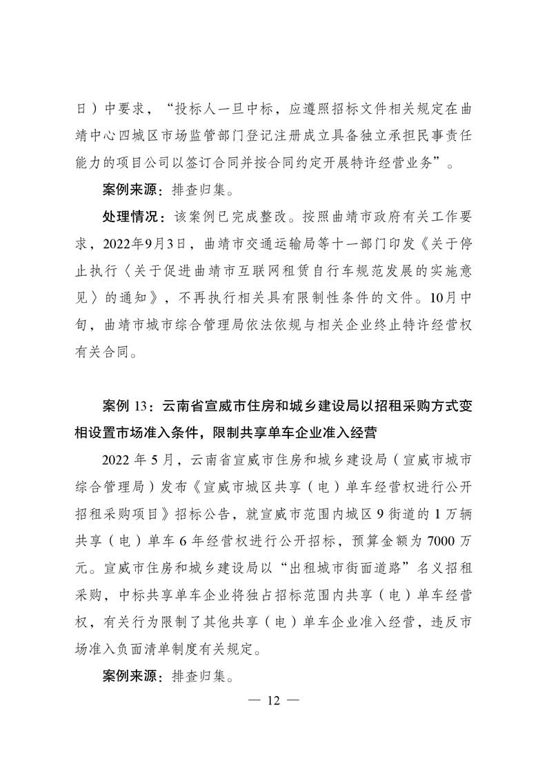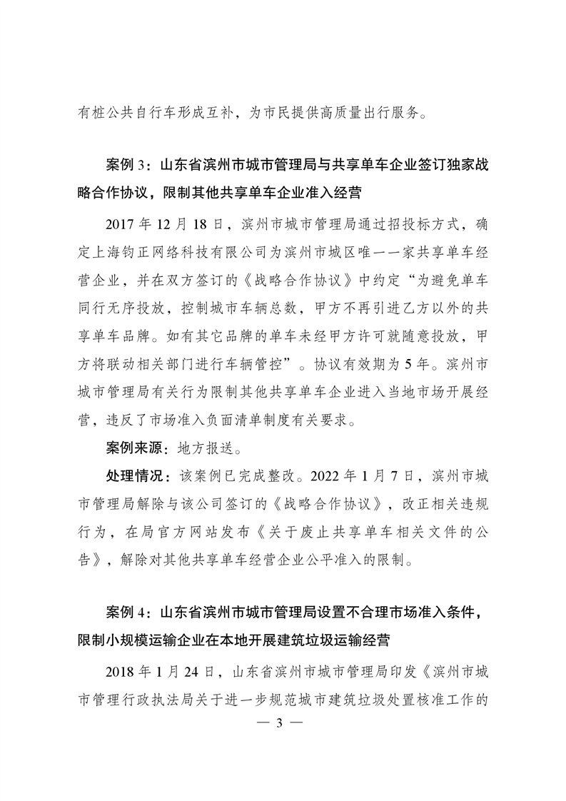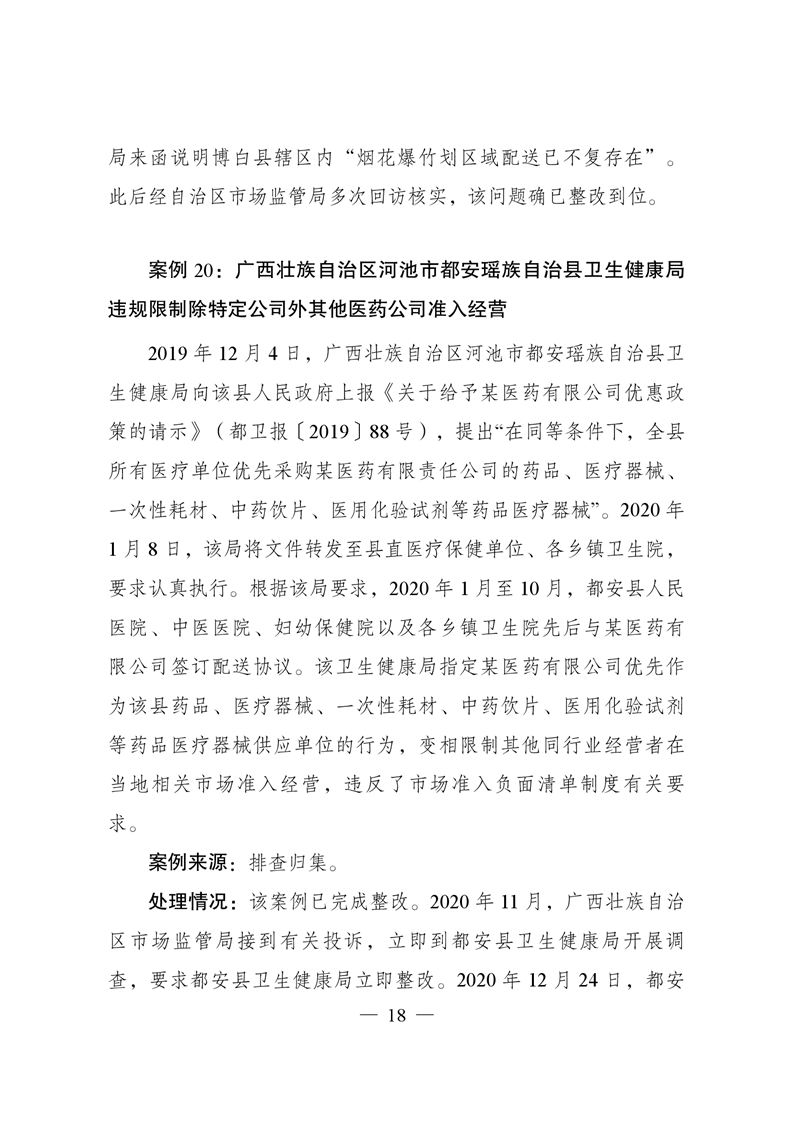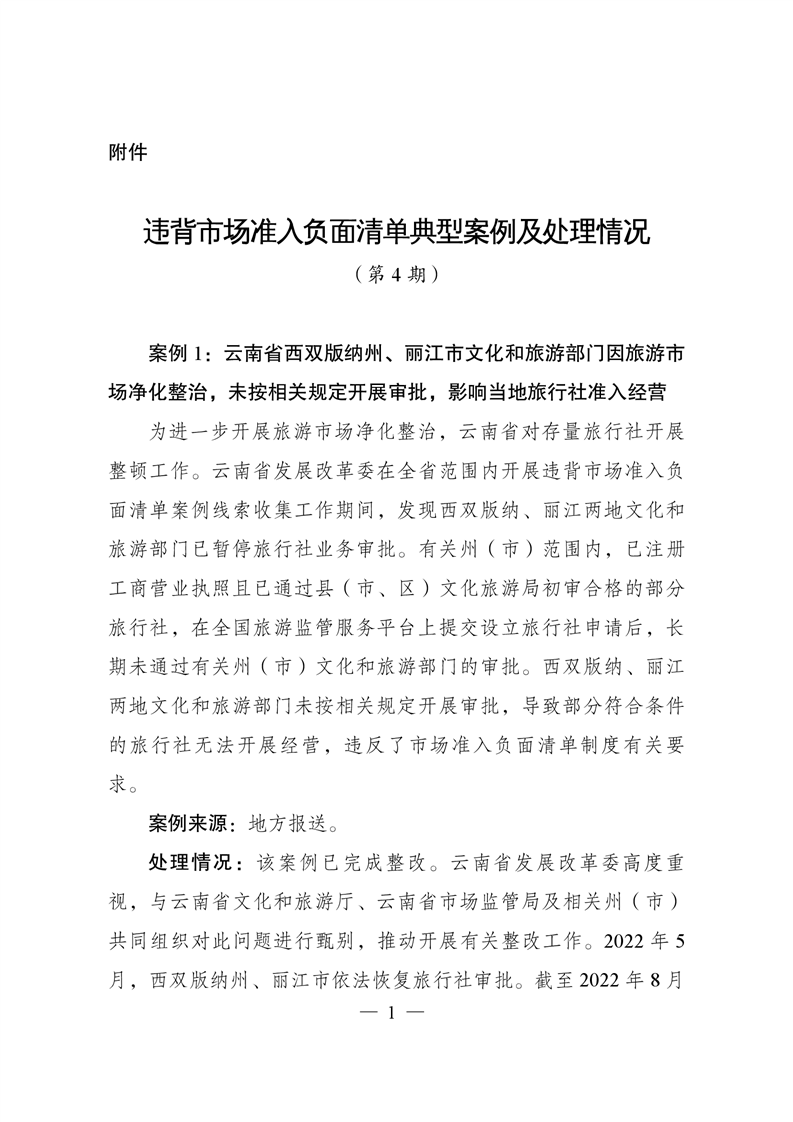 違背市場準入負面清單典型案例及處理情況通報(第4期)