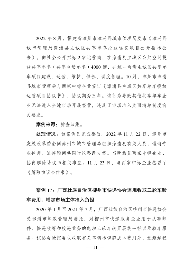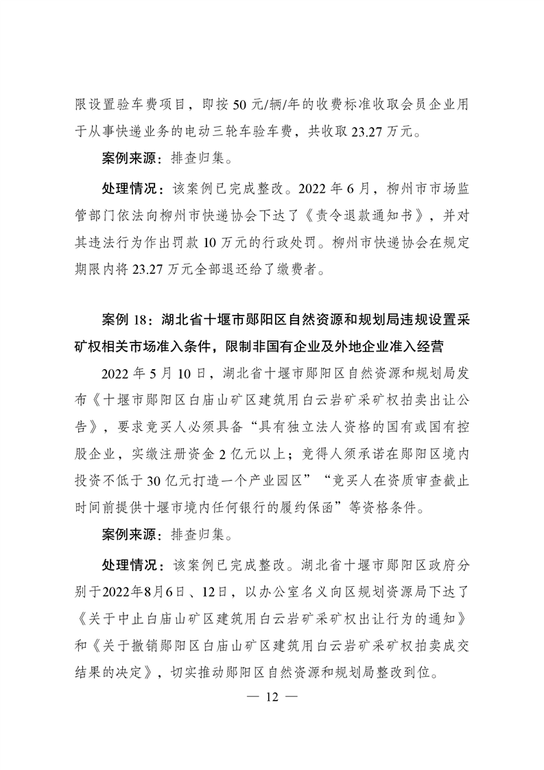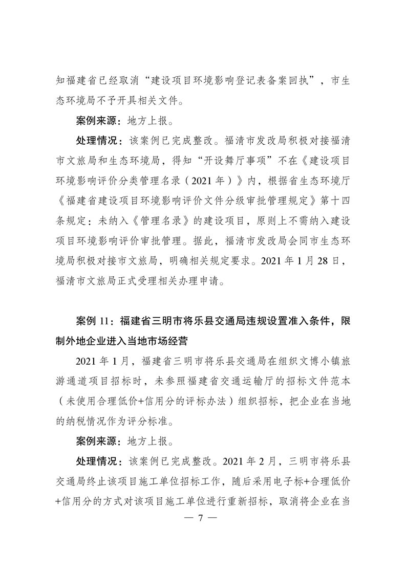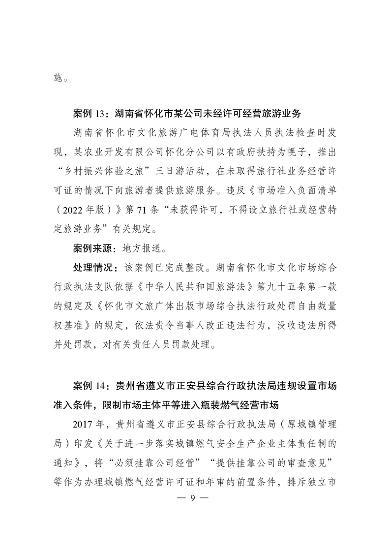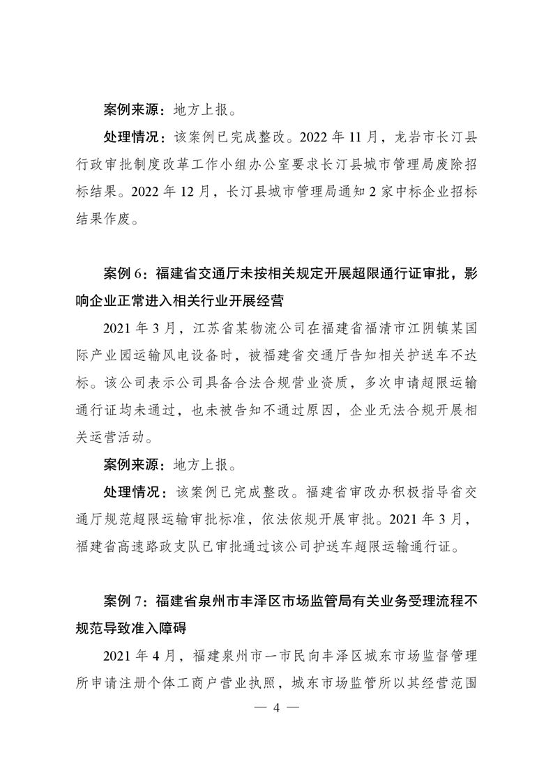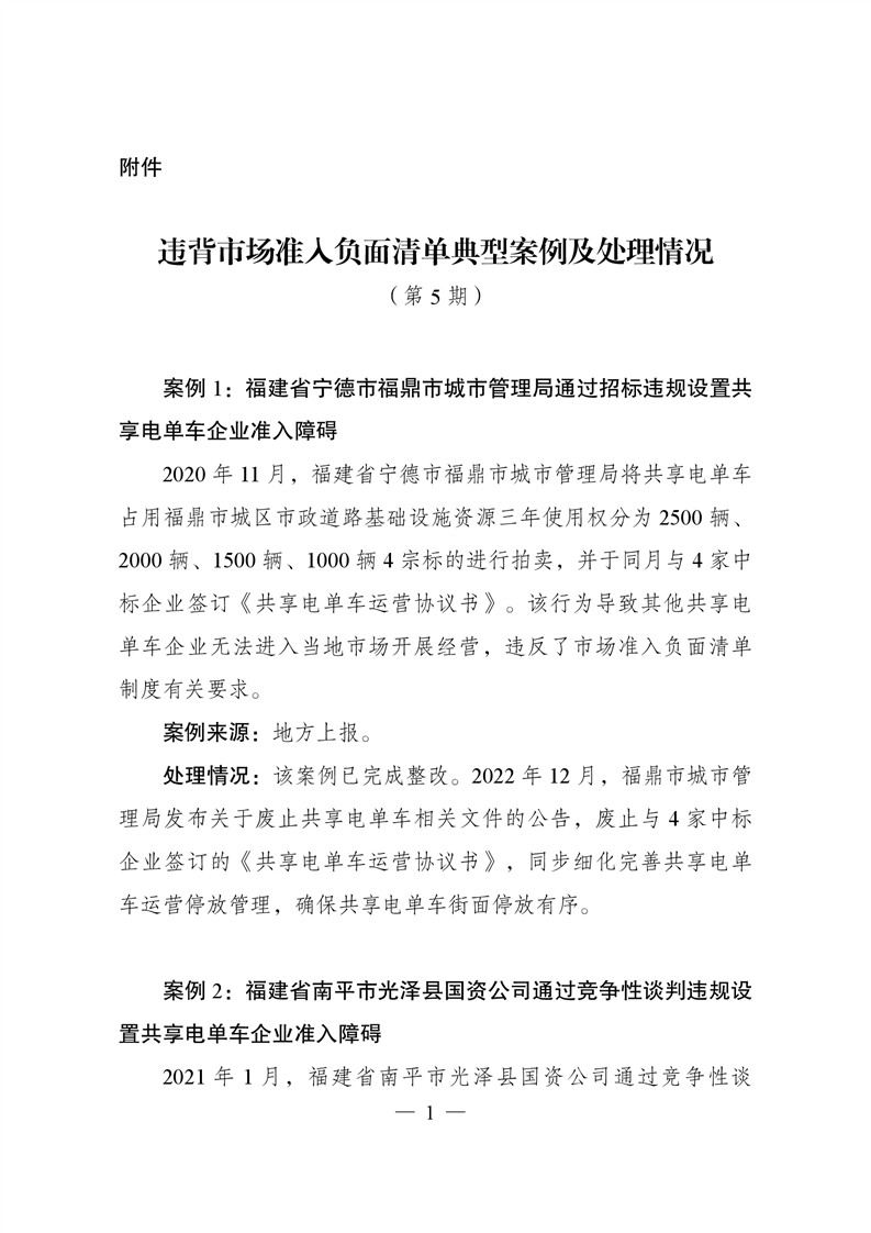 違背市場準入負面清單典型案例及處理情況通報(第5期)