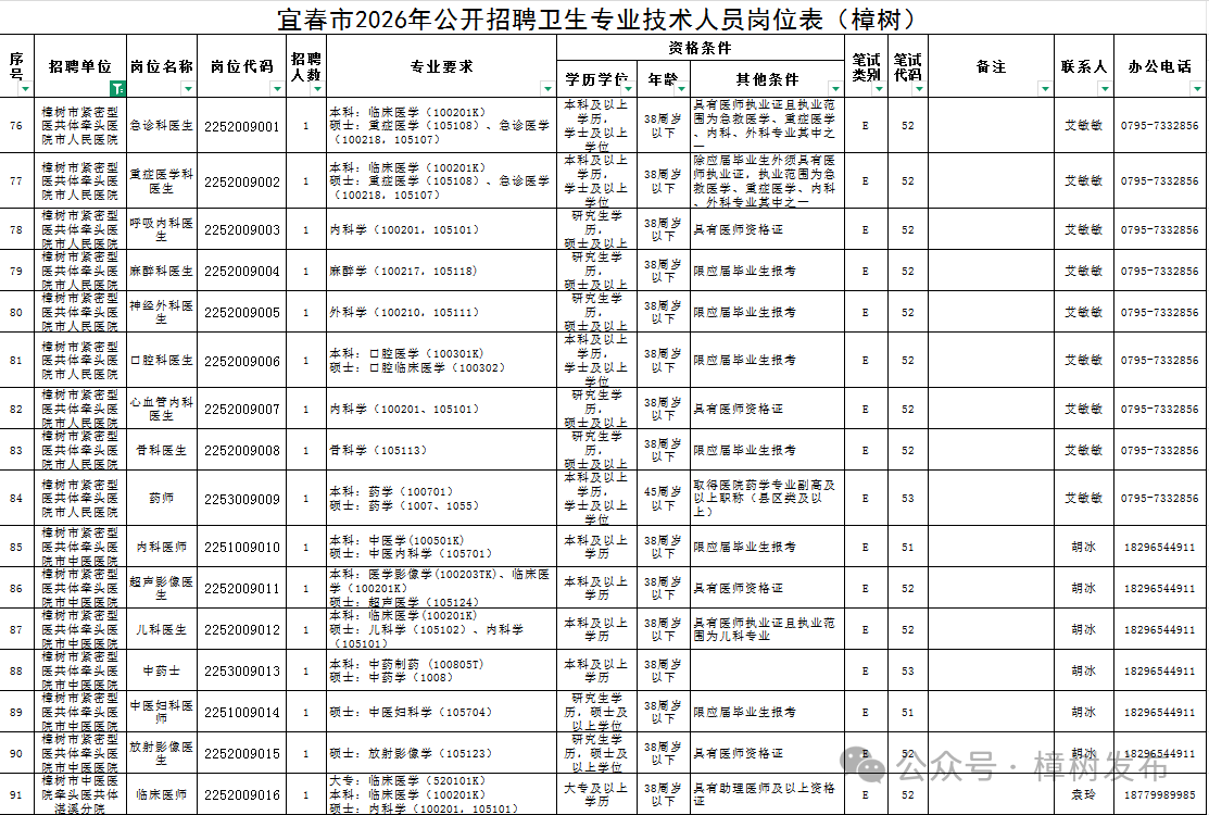 2.宜春市2026年公開招聘衛生專業技術人員崗位表