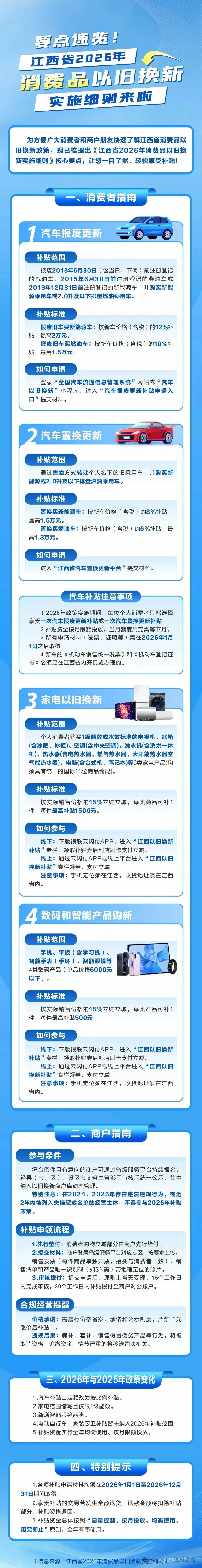 江西2026年以舊換新補貼升級買車、換數(shù)碼產(chǎn)品等最高省2萬元