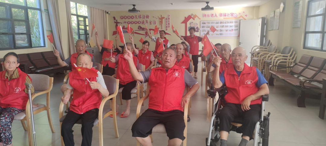 在店下鎮敬老院,大家齊聚一堂,用力地揮舞著鮮艷的五星紅旗,長輩們飽含深情地齊唱國歌,在黨旗下莊嚴宣誓,重溫入黨誓詞,堅定共產主義信念,將對黨的熱愛娓娓道來。