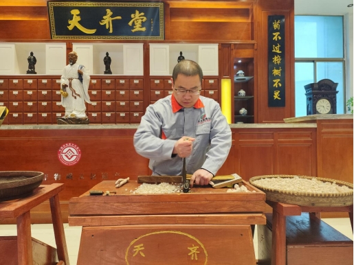 張廷龍,江西樟樹天齊堂中藥飲片有限公司中藥炮制工,技師,從事中藥飲片加工炮制20年,樟樹市第七批“樟樹中藥炮制技藝非物質文化遺產傳承人”。他曾獲得江西省“振興杯”中醫藥行業職業技能競賽“藥材凈選潤切”項目第一名,入選江西省贛鄱俊才支持計劃-高層次高技能領軍人才培養項目人選,他還曾獲得“樟幫傳統中藥炮制老藥工”、樟樹市“藥都匠心—工匠之星”及“江西省技術能手”等。