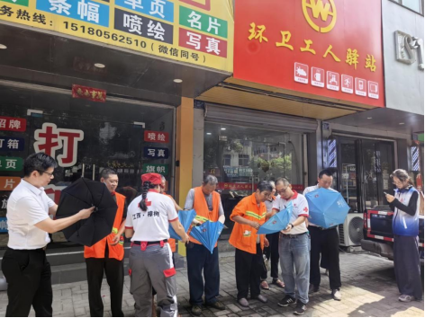 活動結束后,關懷的腳步并未停歇。市紅十字會、市政園林和環衛服務中心的代表們,攜手愛心企業代表,帶著滿滿的慰問物資,深入我市新老城區各環衛驛站,親切看望在驛站及周邊作業的其他環衛工人,將遮陽傘、防暑防蚊藥品等慰問品逐一送到他們手上,確保這份夏日清涼與關懷惠及更廣泛的城市美容師群體。