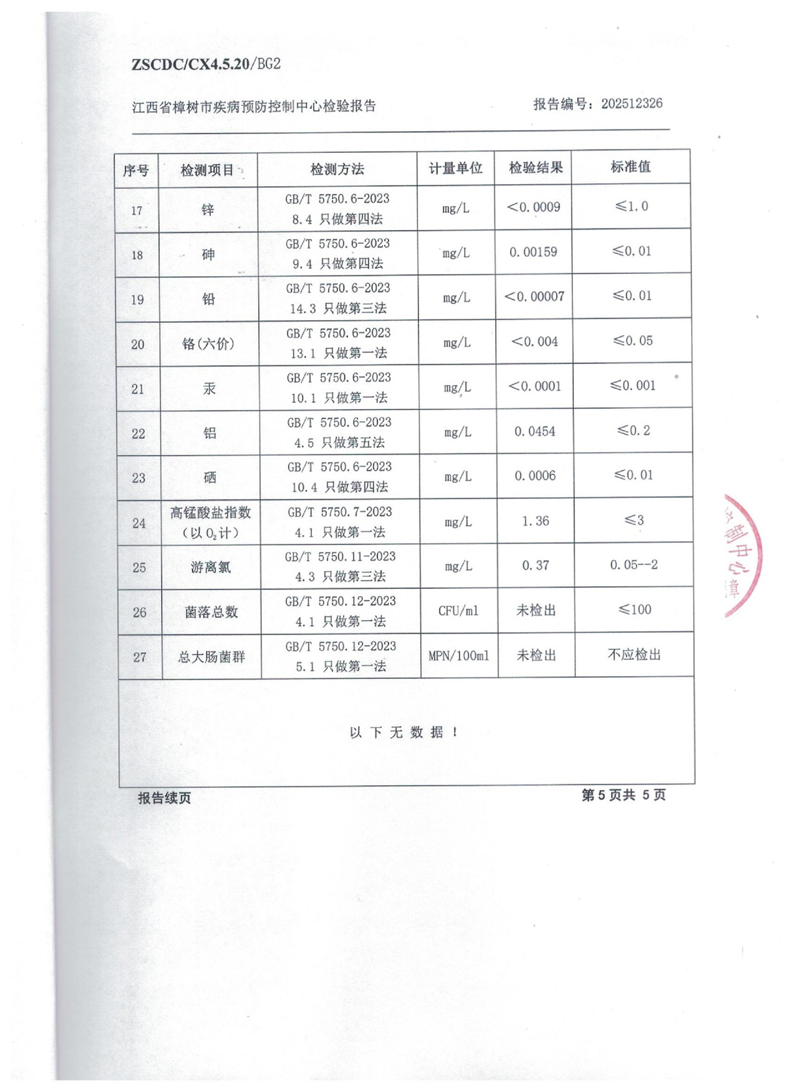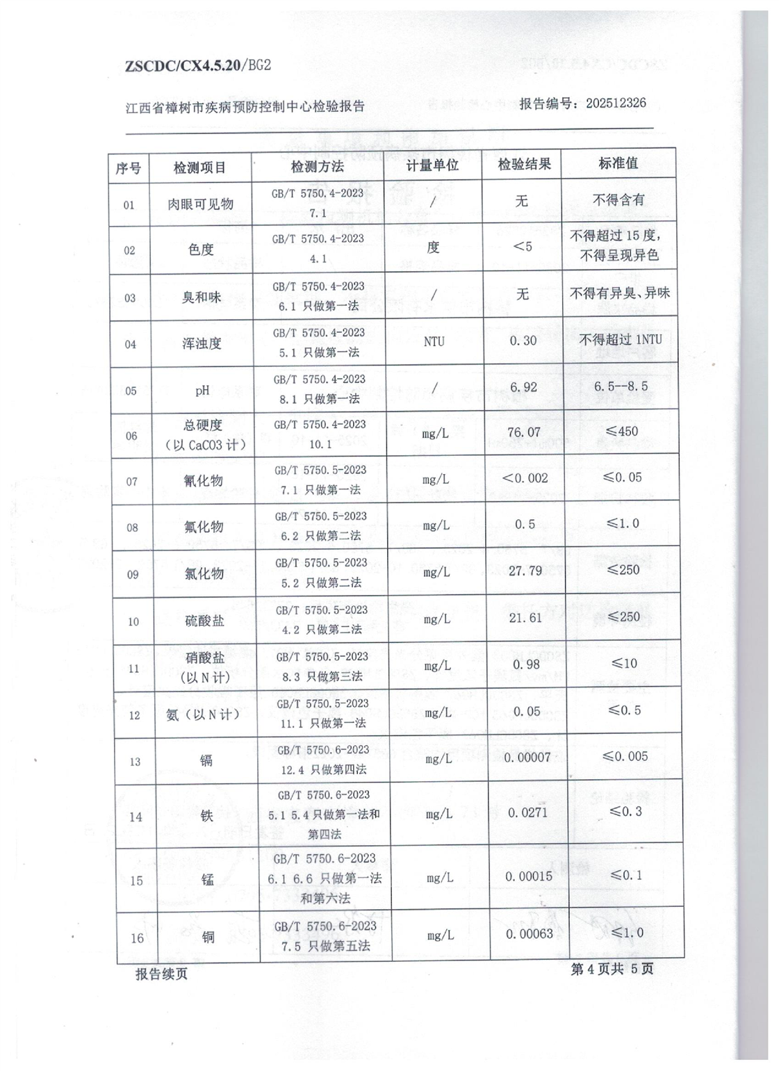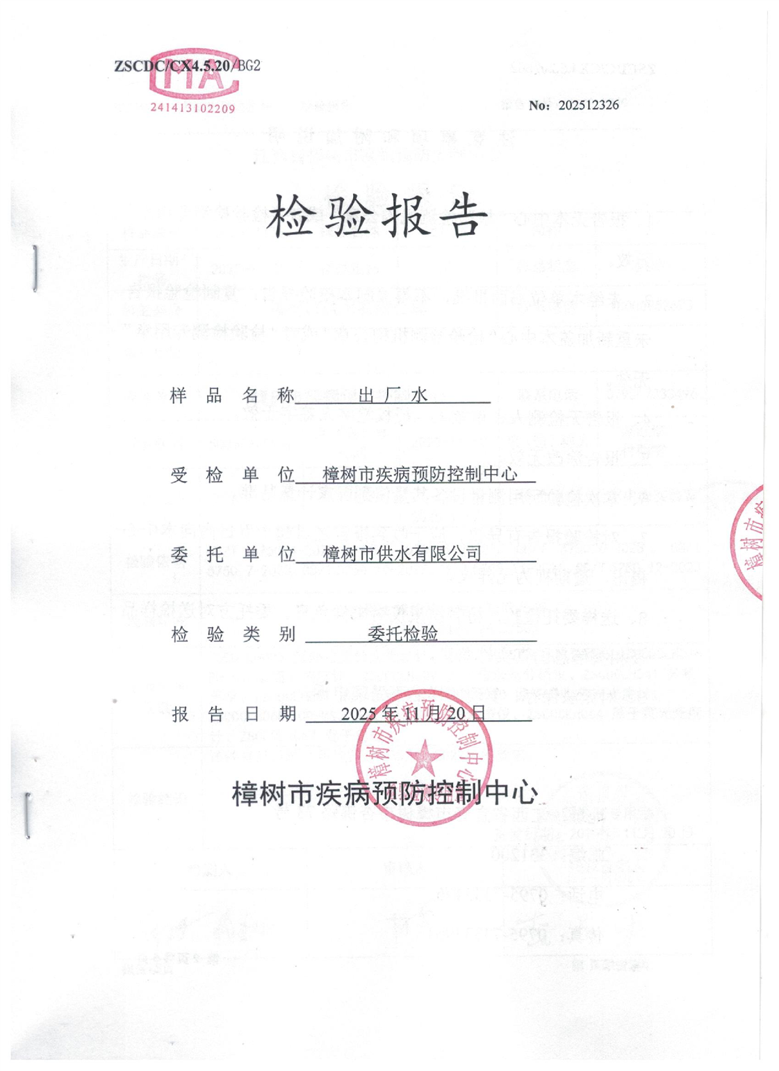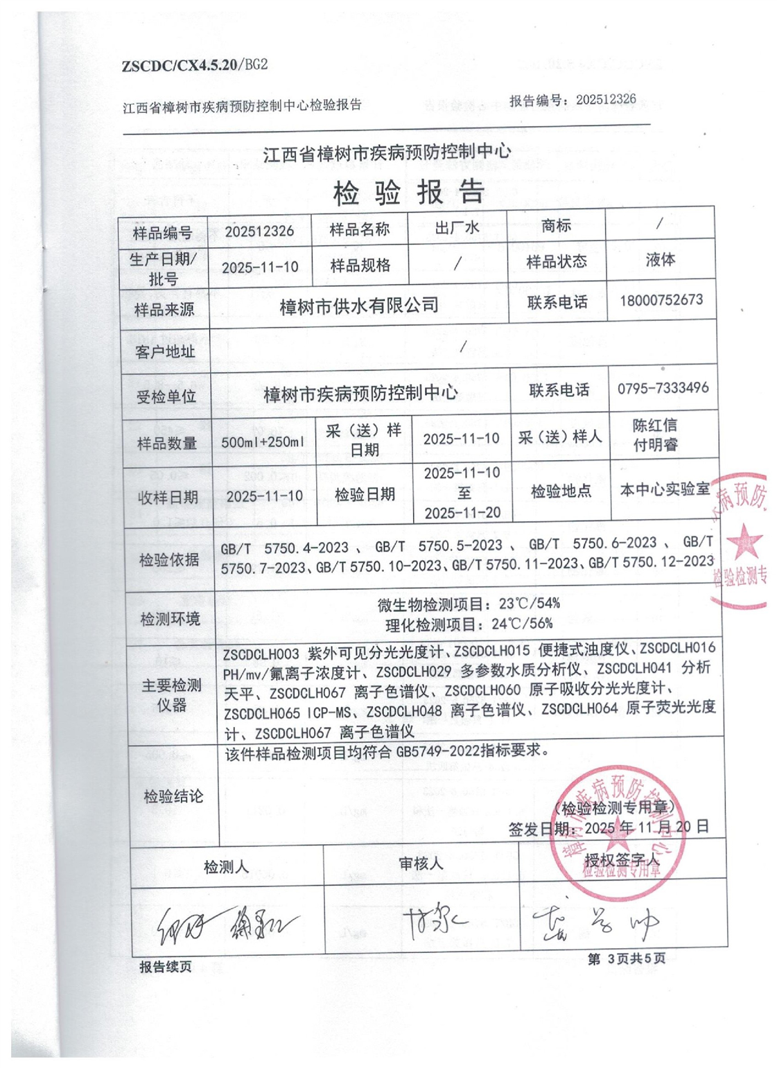 樟樹(shù)市供水有限公司2025年第四季度出廠水檢驗(yàn)報(bào)告