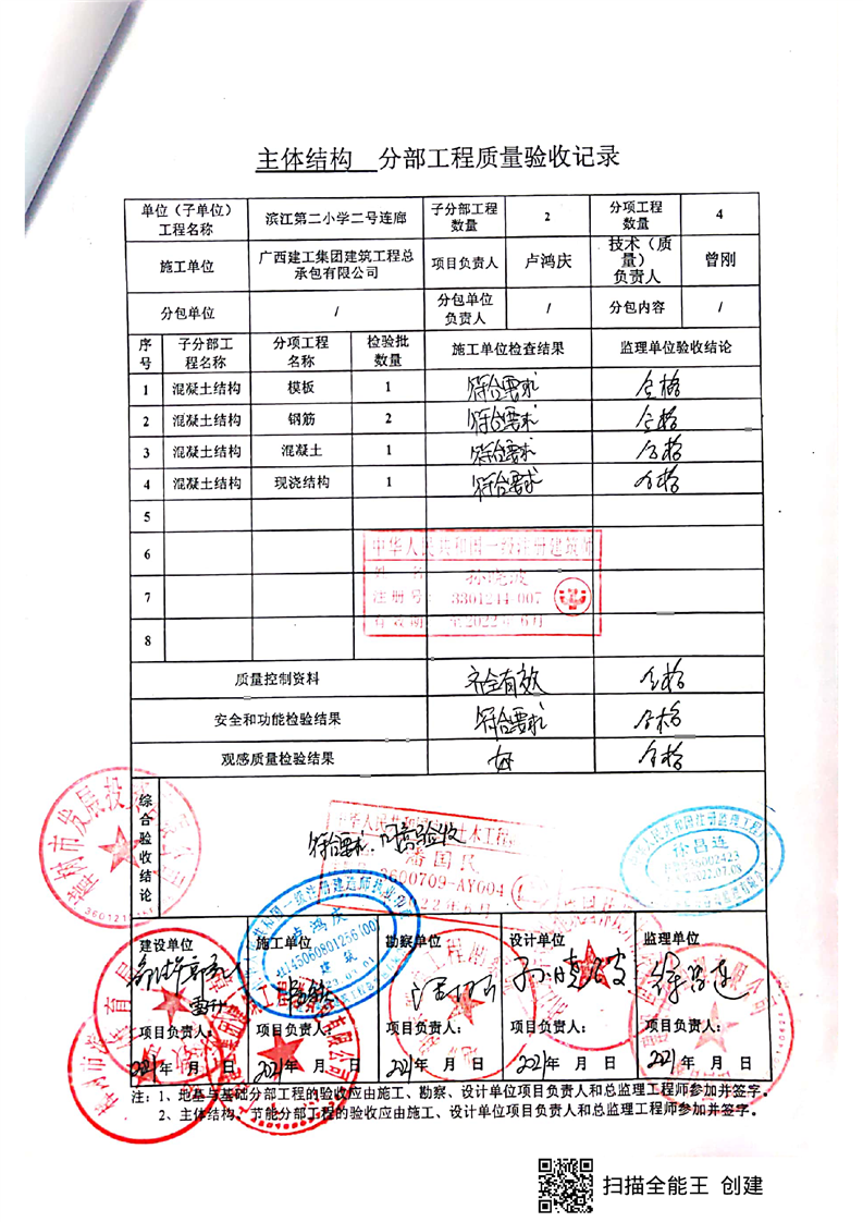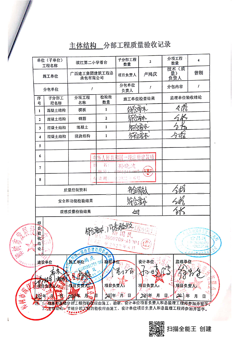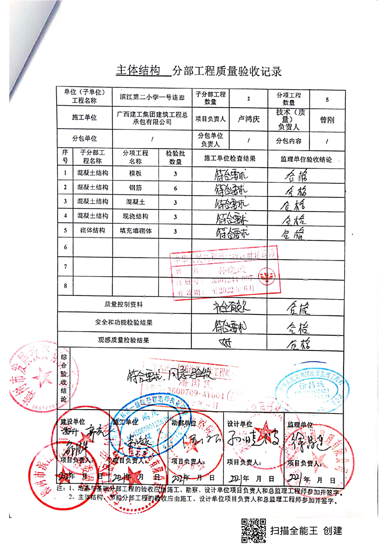 【竣工有關信息】樟樹市濱江二小教學樓工程質量驗收記錄表