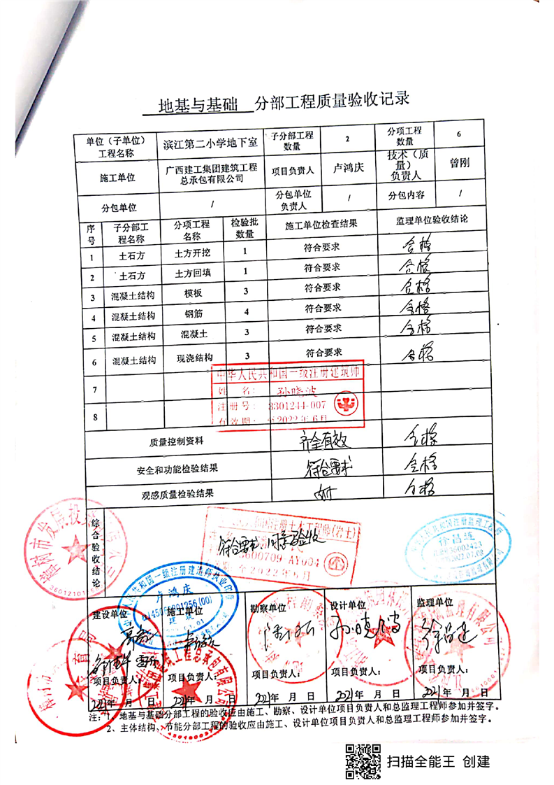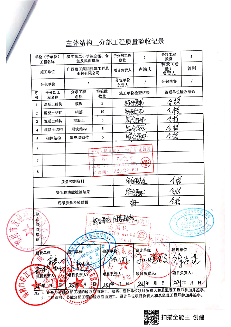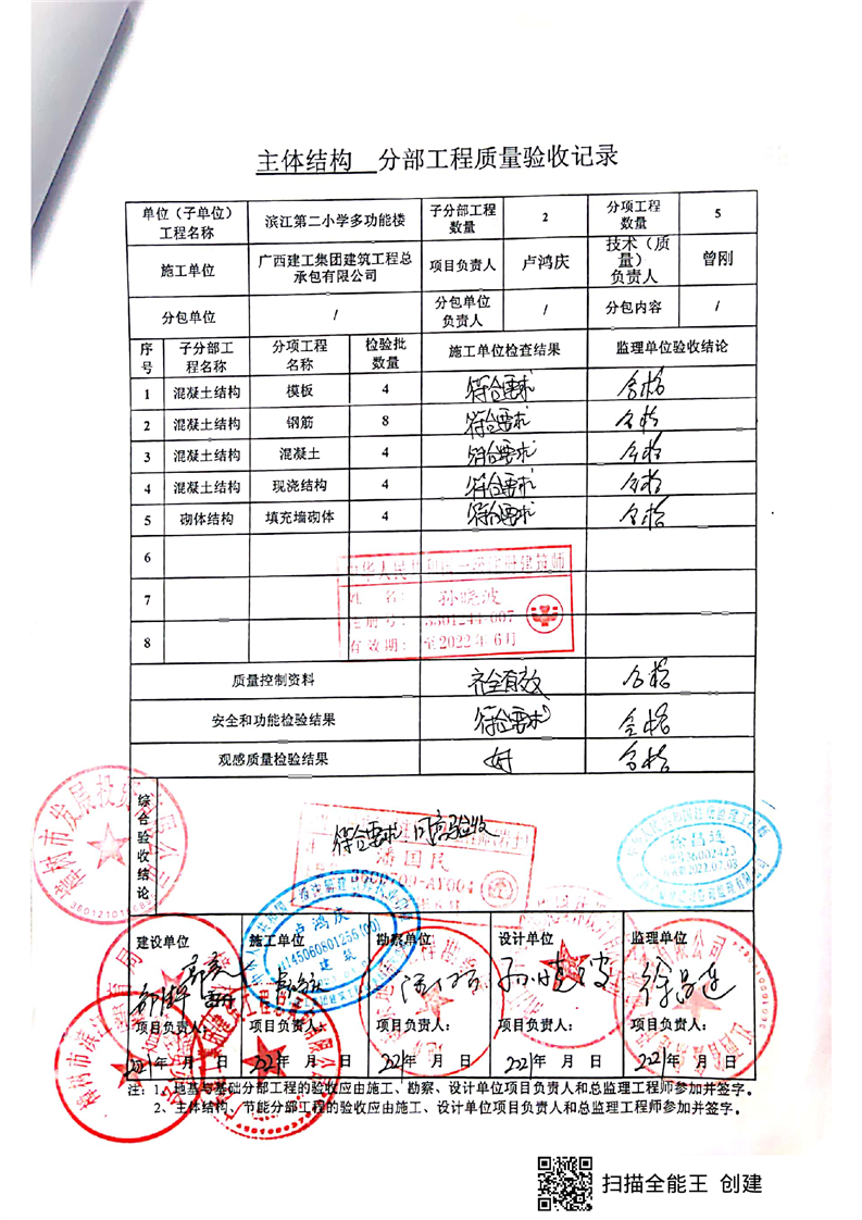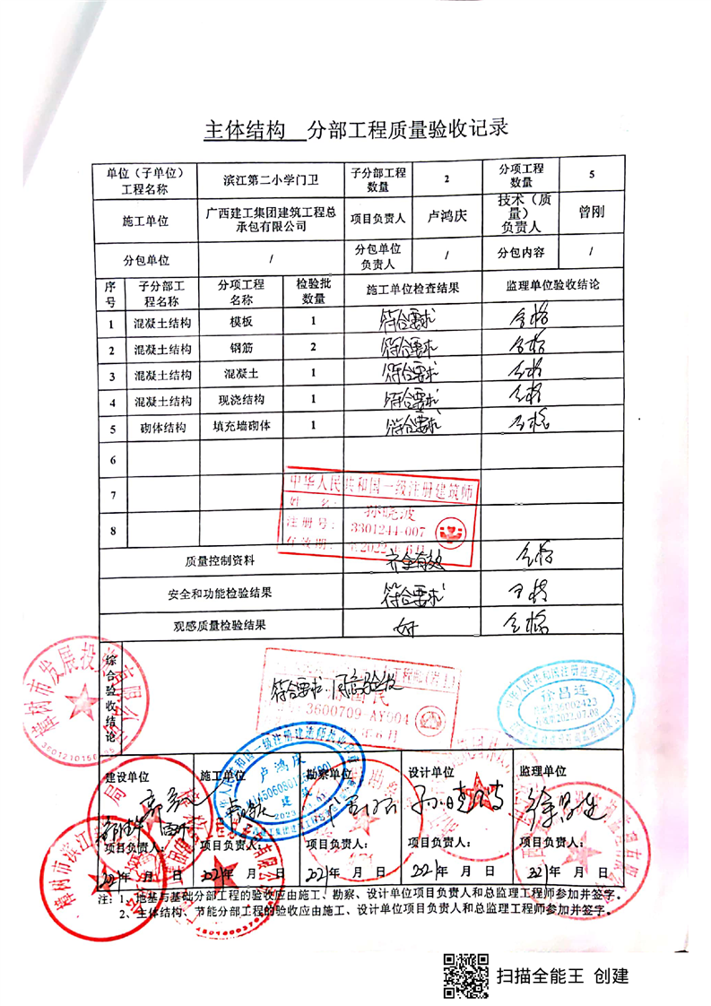【竣工有關信息】樟樹市濱江二小教學樓工程質量驗收記錄表