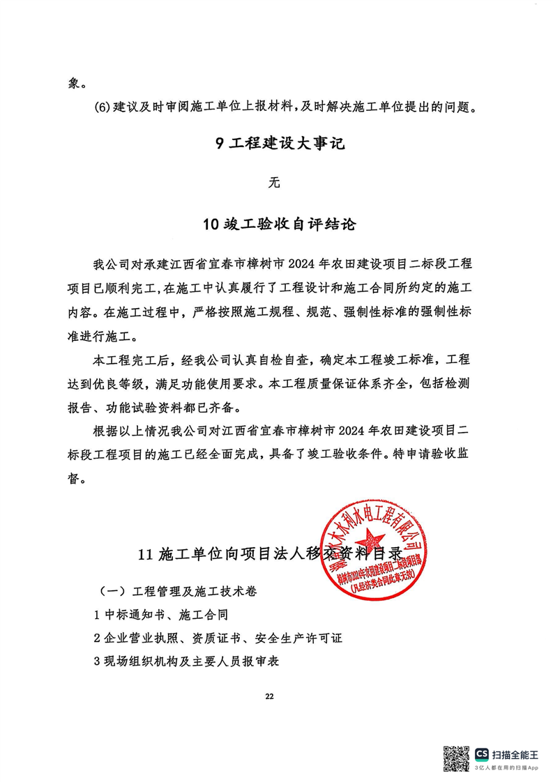 江西省宜春市樟樹市2024年農(nóng)田建設(shè)項(xiàng)目二標(biāo)段工程竣工報告