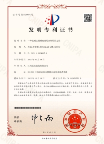 公司依托巖鹽資源優(yōu)勢(shì),積極由單一制鹽企業(yè)向純堿生產(chǎn)的鹽化工企業(yè)轉(zhuǎn)型,不斷向鹽化工產(chǎn)業(yè)鏈延伸發(fā)展。為此,公司吸收引進(jìn)了國(guó)內(nèi)領(lǐng)先、國(guó)際先進(jìn)的井下循環(huán)制堿工藝,建設(shè)完成了年產(chǎn)60萬(wàn)噸鹽堿鈣聯(lián)產(chǎn)裝置,實(shí)現(xiàn)了以淡鈣液堿渣和制鹽冷凝水的綜合利用為關(guān)鍵點(diǎn)串聯(lián)起整個(gè)制鹽和鹽化工產(chǎn)業(yè)鏈,并在此工藝基礎(chǔ)上繼續(xù)自主研發(fā)實(shí)現(xiàn)井上井下循環(huán)模式,破解了純堿鈣液堿渣兩相輸送的降溫難題、輸送難題、注井難題,有效解決了純堿行業(yè)中氨堿法淡鈣液堿渣處理成本高、環(huán)境污染大的行業(yè)痛點(diǎn),具有較高的經(jīng)濟(jì)效益和環(huán)境效益。公司不僅取得多項(xiàng)相關(guān)專(zhuān)利技術(shù),純堿產(chǎn)品被認(rèn)定為江西綠色生態(tài)產(chǎn)品,該項(xiàng)技術(shù)還被教育部科技查新工作站、江西省知識(shí)產(chǎn)權(quán)保護(hù)中心、中國(guó)純堿工業(yè)協(xié)會(huì)等認(rèn)定為具備國(guó)內(nèi)新穎性,國(guó)際先進(jìn)性。
