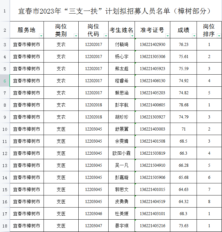 附件:宜春市2023年“三支一扶”計劃擬招募人員名單(樟樹部分)