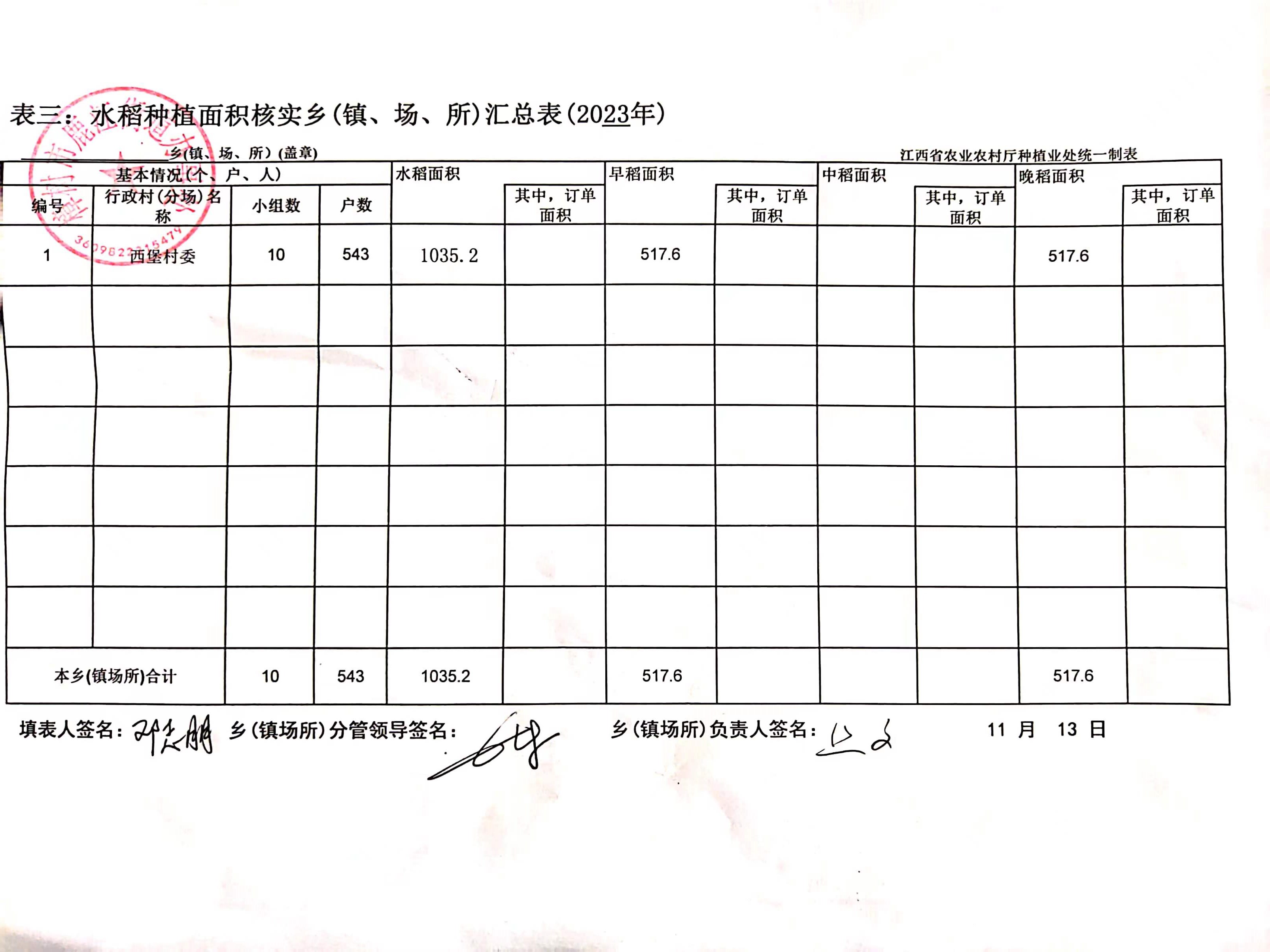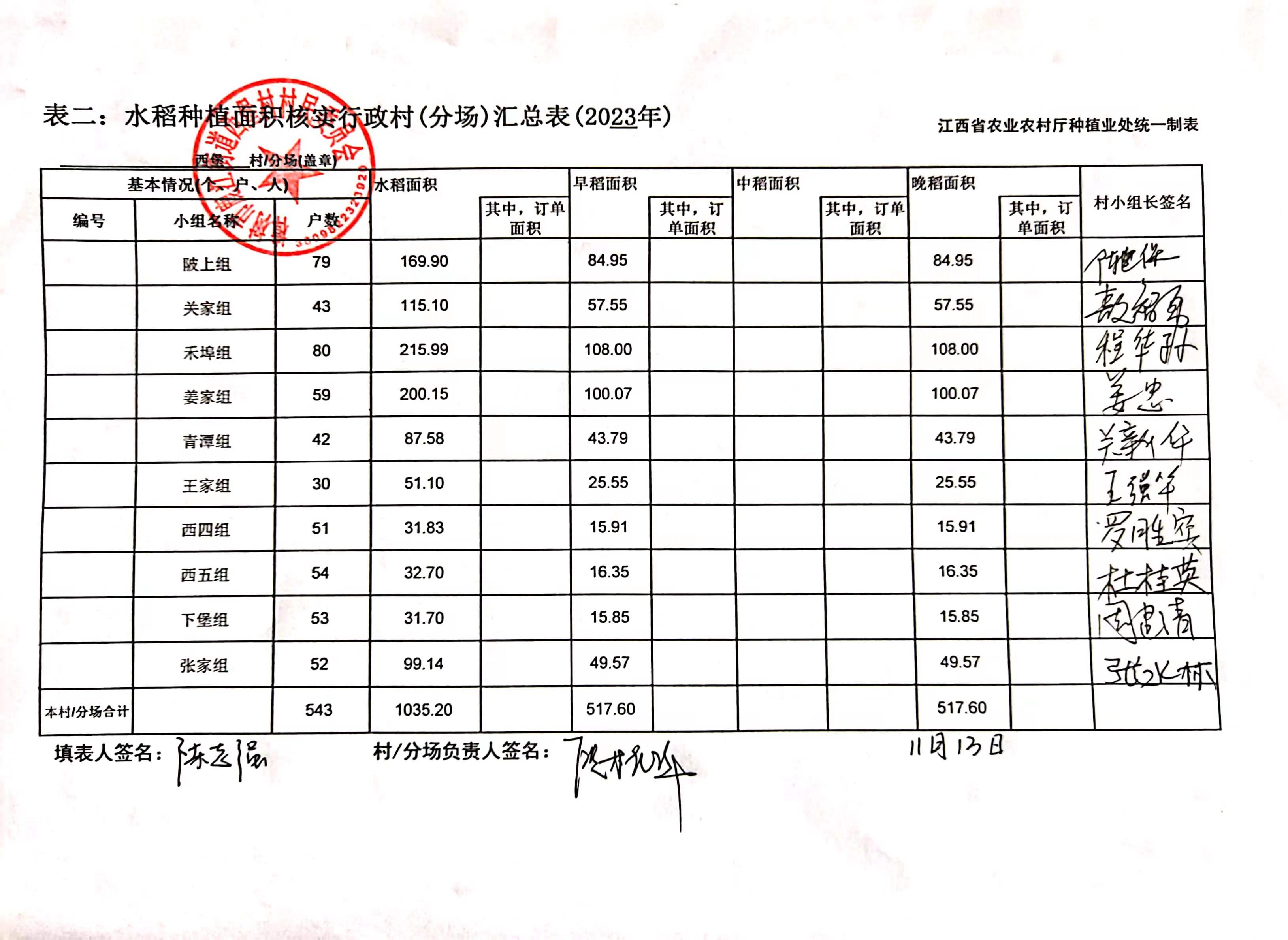 鹿江街道2023年水稻種植面積核實行政村(分場)匯總表