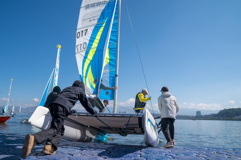 2024年10月26日,參加中國(guó)萬(wàn)水千帆賽(大理站)比賽的船只從出發(fā)點(diǎn)下水。當(dāng)日,2024中國(guó)戶外運(yùn)動(dòng)產(chǎn)業(yè)大會(huì)正式啟幕。作為大會(huì)四大板塊之一的“賽事活動(dòng)”也于當(dāng)日開賽?!百愂禄顒?dòng)”板塊共涵蓋4場(chǎng)國(guó)家級(jí)賽事,分別是大理環(huán)洱海自行車賽、中國(guó)萬(wàn)水千帆賽(大理站)、大理徒步行以及古城人車定向挑戰(zhàn)賽。新華社記者 彭奕凱 攝