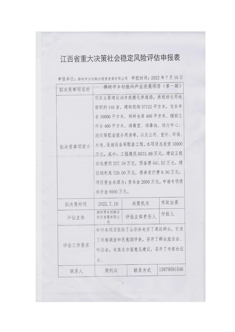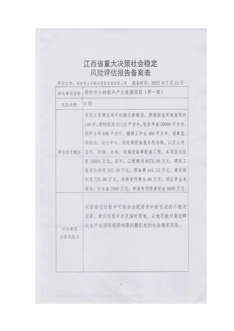 樟樹市鄉村振興產業發展項目(第一期)風險評估報告備案表