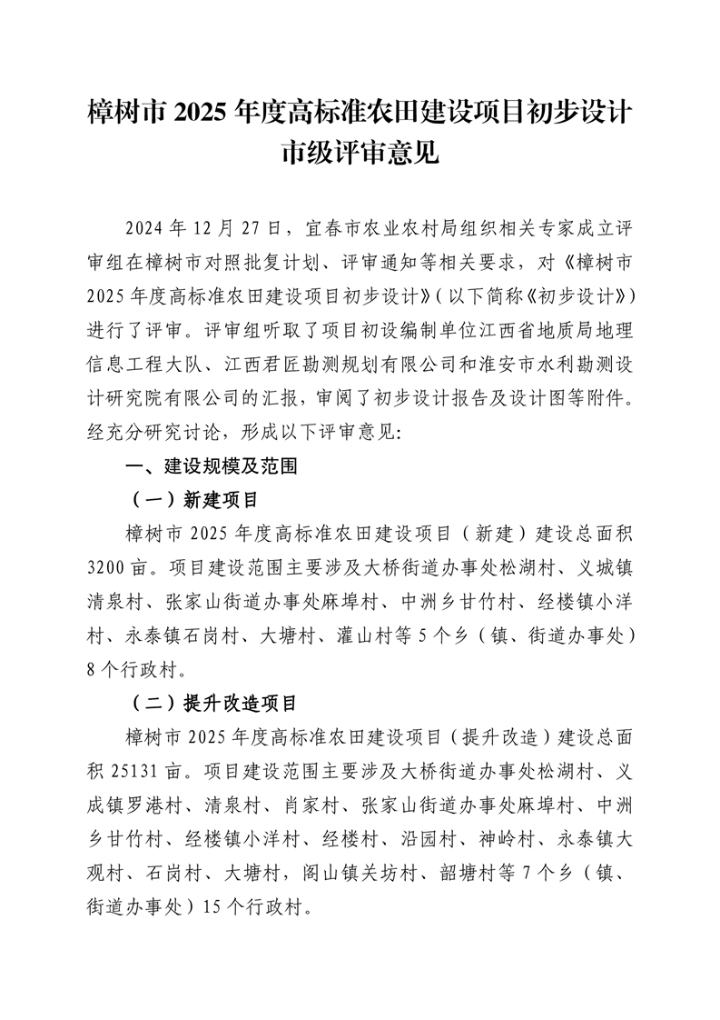 宜農便〔2025〕13號關于樟樹市、高安市2025年度高標準農田建設項目初步設計的批復