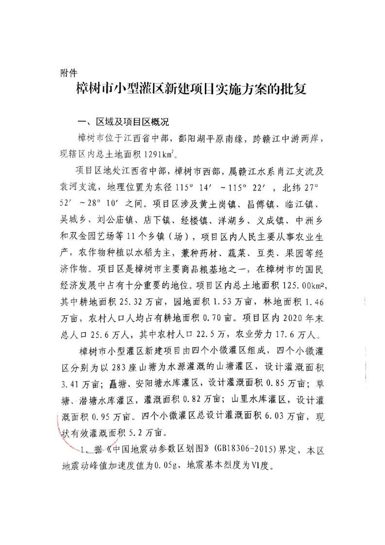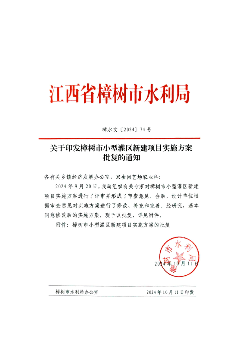 關于印發樟樹市小型灌區新建項目實施方案批復的通知