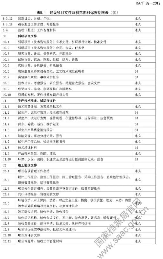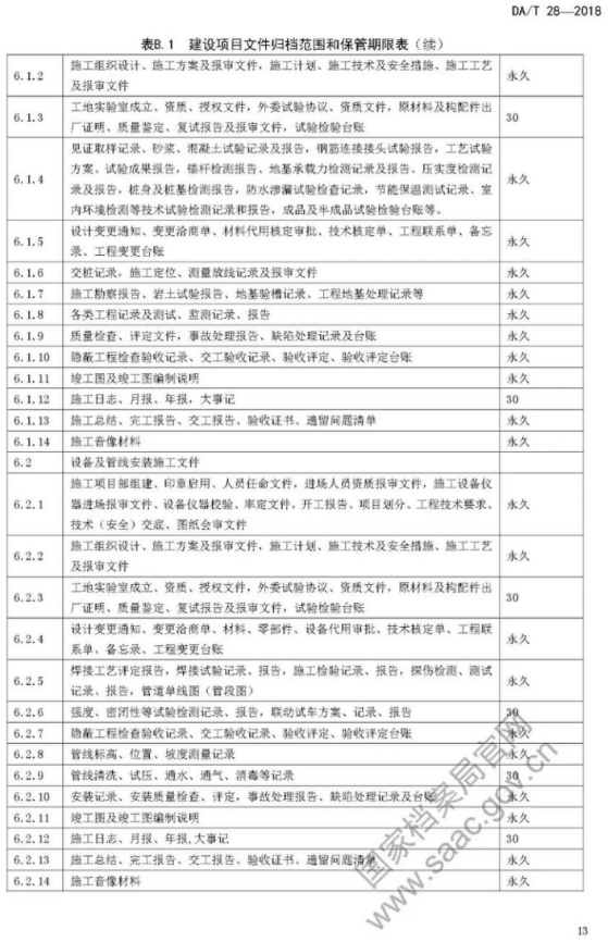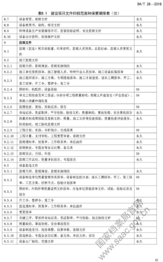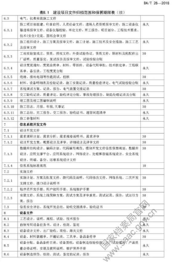 7.3.1.2建設單位應依據附錄B的歸檔范圍和保管期限表,結合項目建設內容、行業特點、管理模式等特征制定符合項目實際的歸檔范圍和保管期限表。