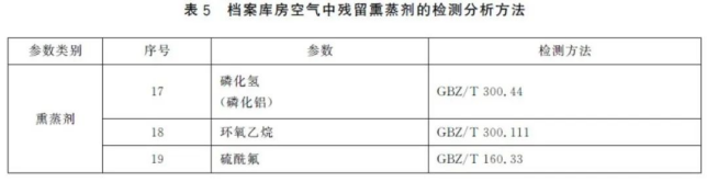 6.2.2.4 檔案庫房空氣中殘留熏蒸劑的推薦檢測分析方法見表5。